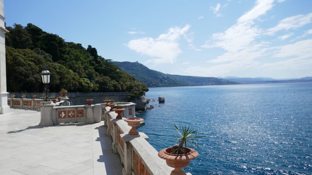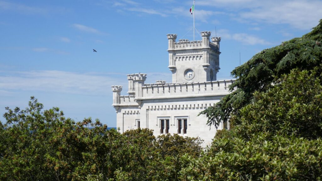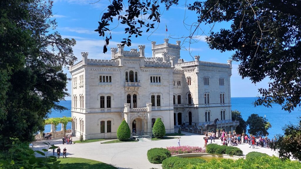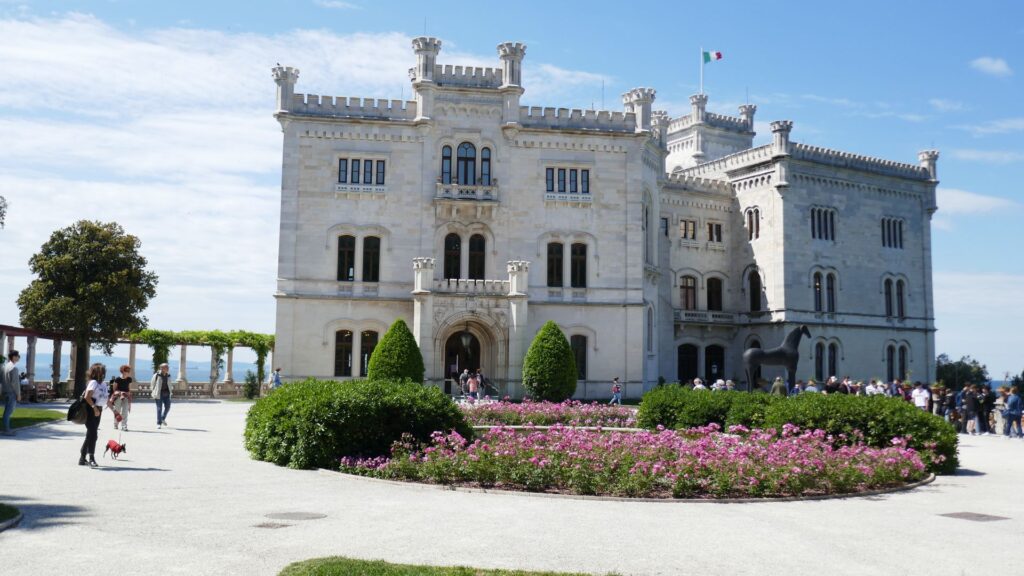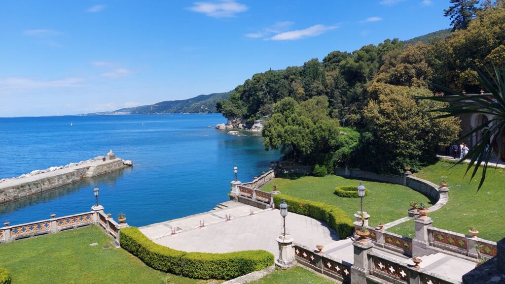 13.05: Wir machen einen Ausflug zum Schloss Miramare. Das Schloss liegt ca. 5km außerhalb von Triest, über der Bucht von Grignano. Es wurde 1855 für Erzherzog Maximilian von Habsburg erbaut. Umgeben ist das Schloss von einem 22 ha großen Park.