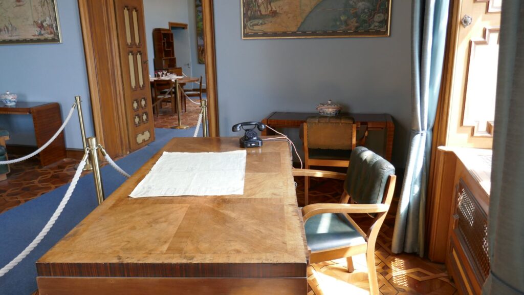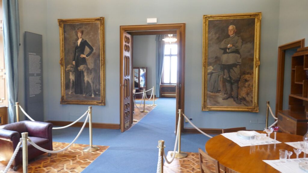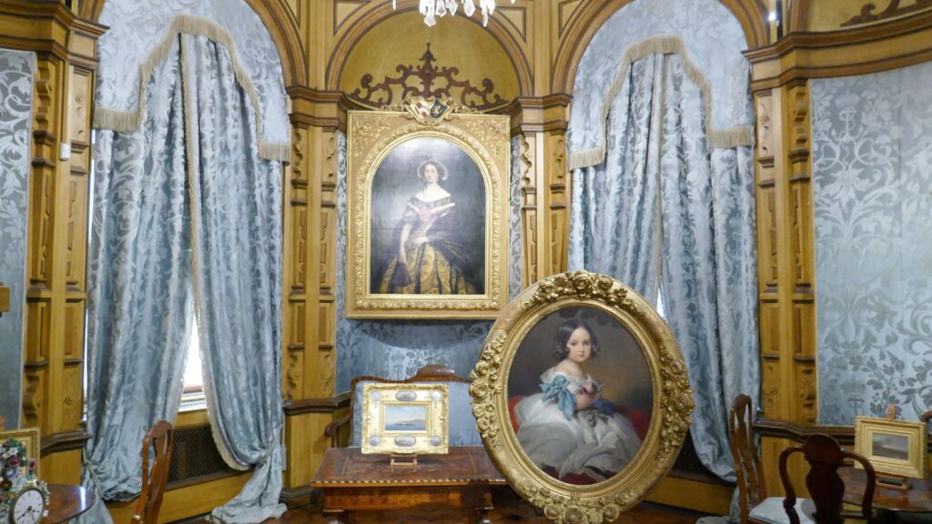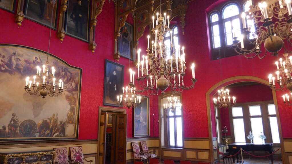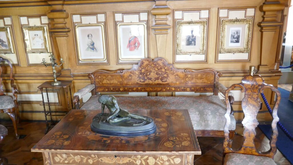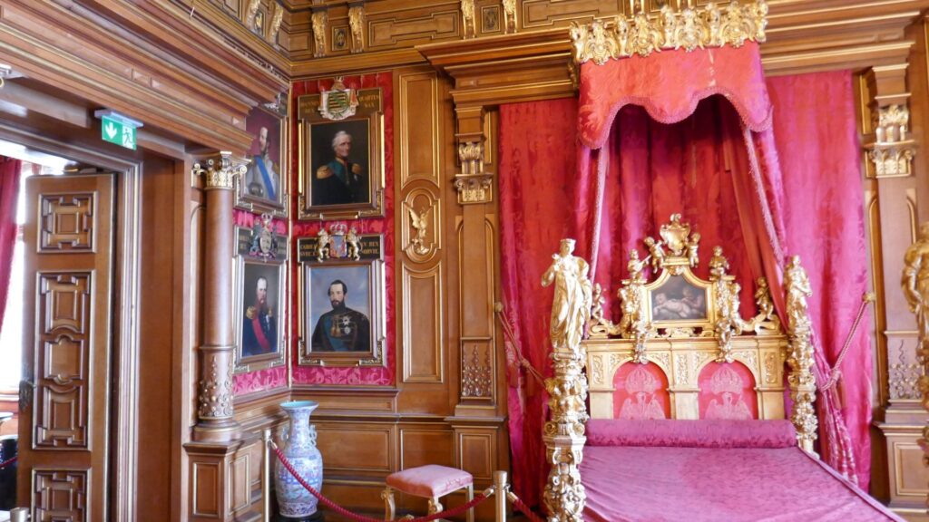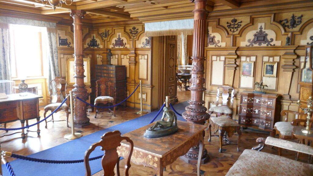 Natürlich besichtigen wir auch die Innenräume vom Schloss. Die Ausstattung ist nix für uns, aber der Blick vom Balkon ist grandios 😉