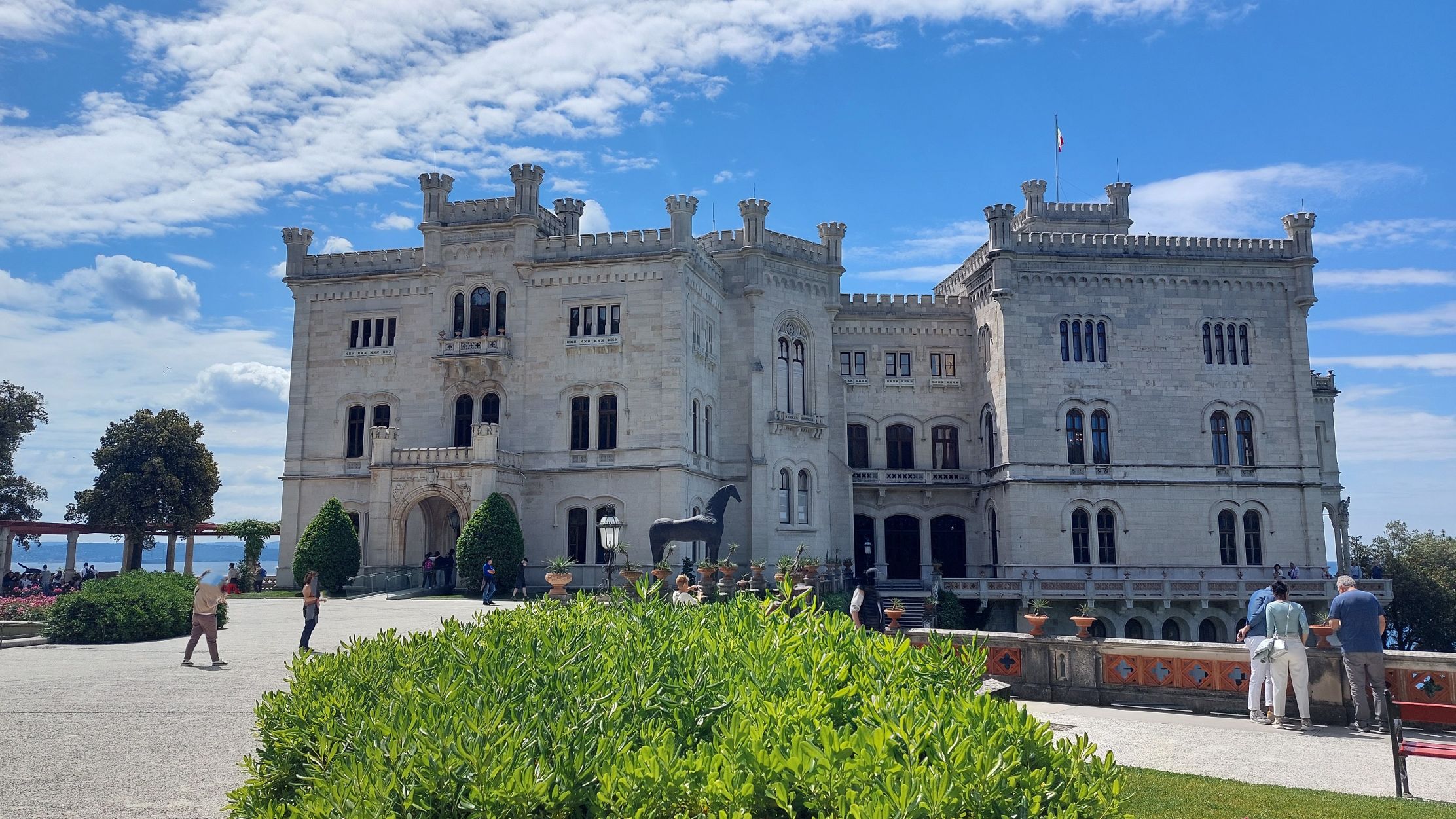 13.05: Wir machen einen Ausflug zum Schloss Miramare. Das Schloss liegt ca. 5km außerhalb von Triest, über der Bucht von Grignano. Es wurde 1855 für Erzherzog Maximilian von Habsburg erbaut. Umgeben ist das Schloss von einem 22 ha großen Park.