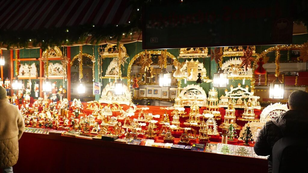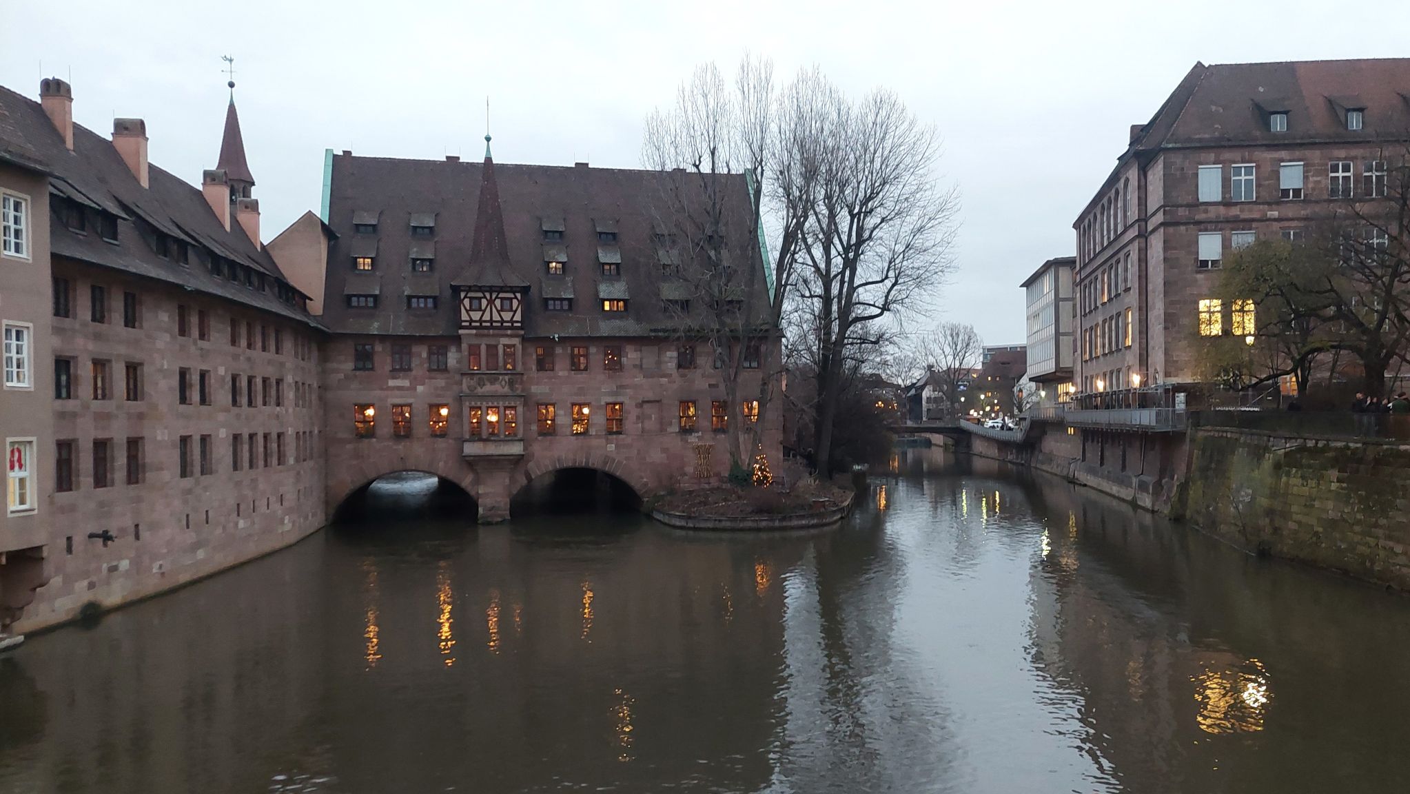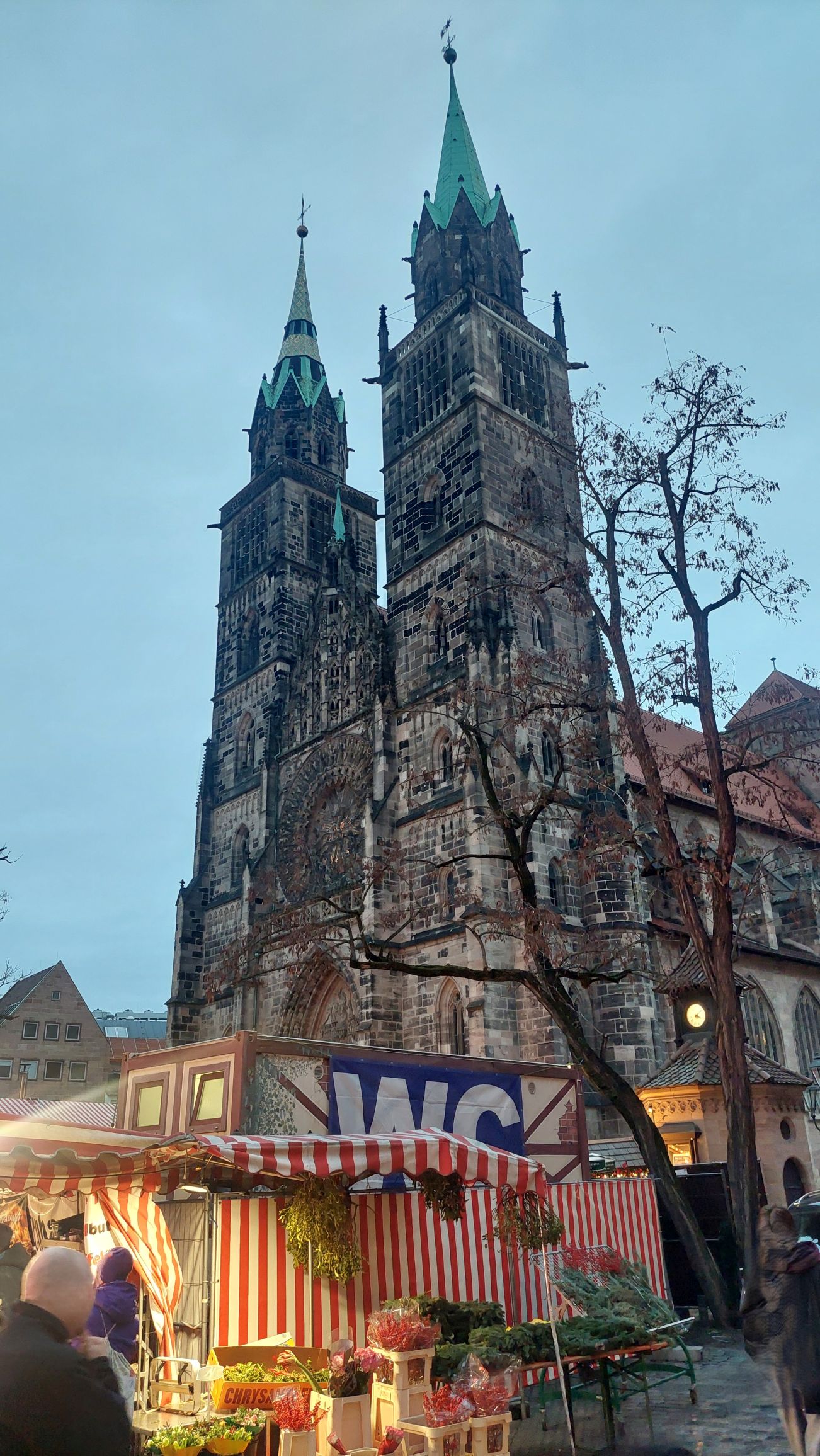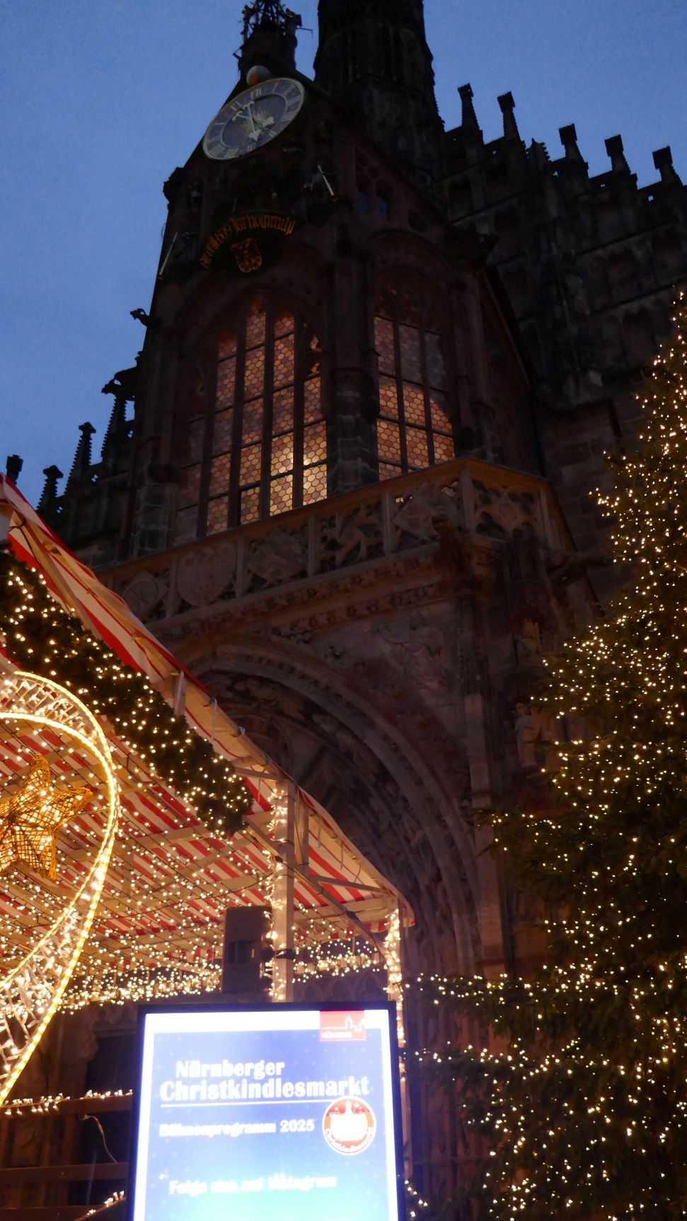 10.12.: Einen Tag später als geplant beginnt heute unsere Adventmarkt-Tour in Deutschland. Mit dem Zug geht es am Vormittag nach Nürnberg. Von Wien nach Nürnberg brauchen wir mit dem Zug nur knapp über 4 Stunden. Am Nachmittag kommen wir an und nach kurzer Rast in unserem Hotel gehen wir los zum Christkindlesmarkt. Zum Glück hält sich der Menschenandrang vorerst in Grenzen. Der Markt ist nett, aber ziemlich viele Punsch- und Essstände und ziemlich wenig Hütten mit Handwerk und Weihnachtsdeko.