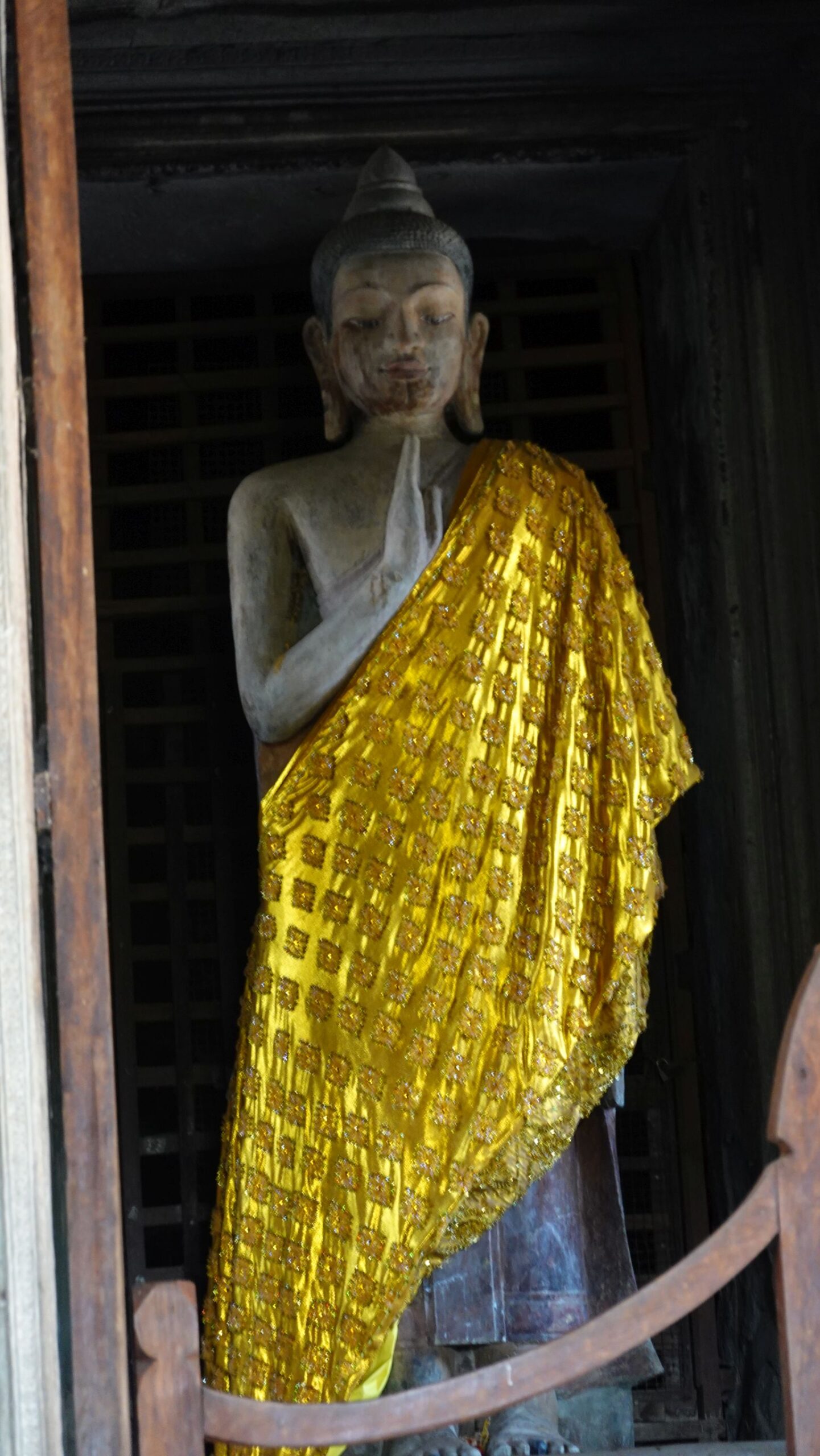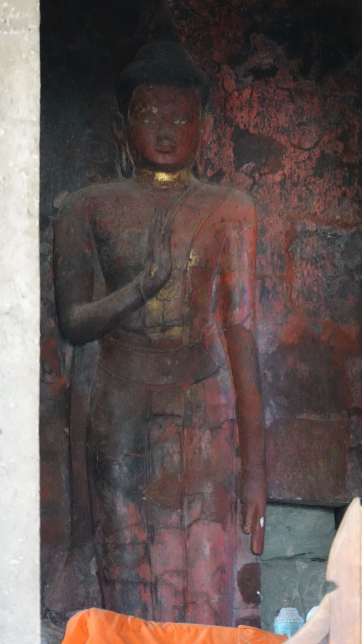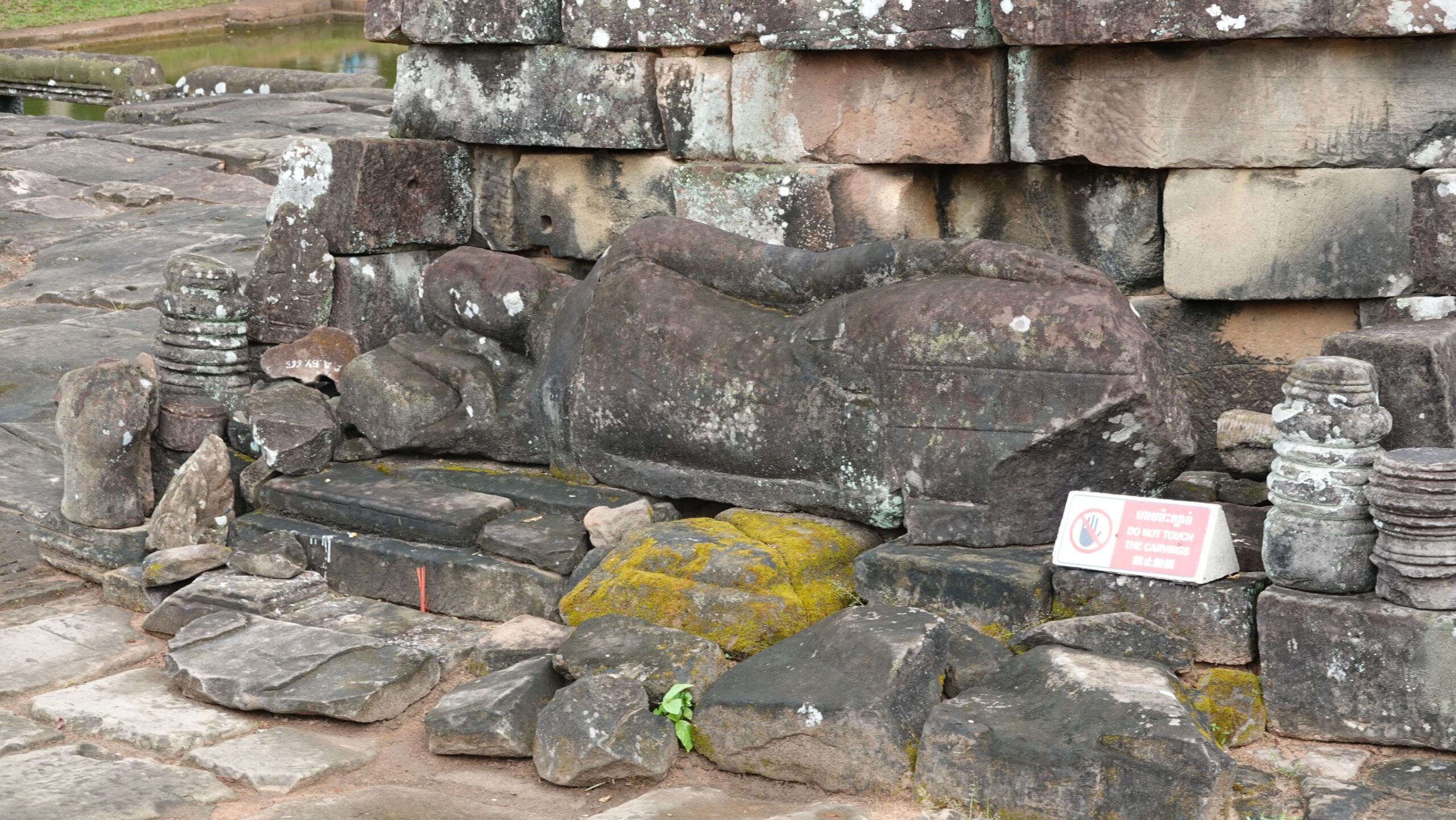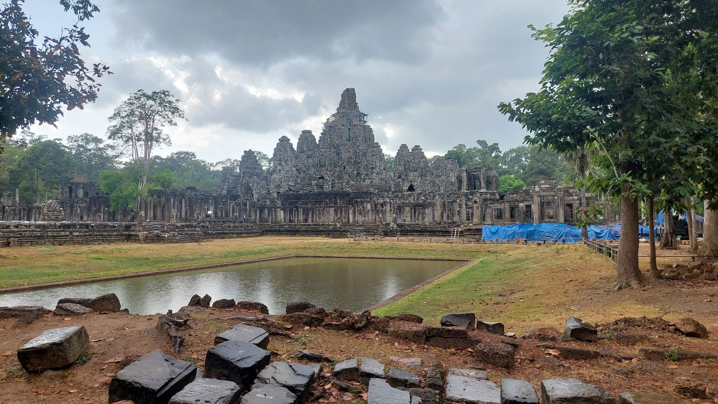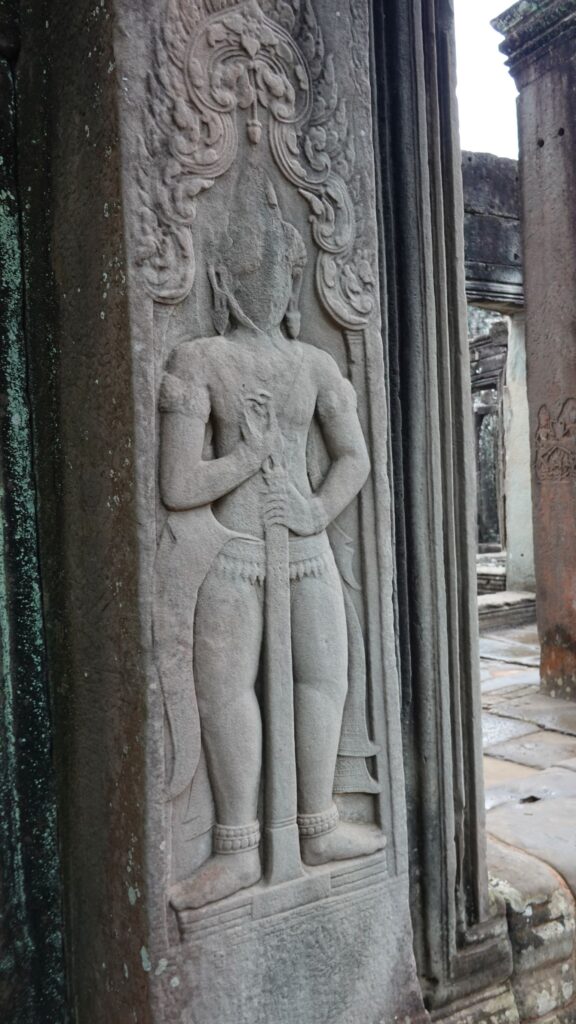 Leider hat es heftig zu regnen begonnen, sodass der Eindruck, insbesondere von den riesigen Steingesichtern auf den Türmen rundum. Wir marschieren mit Regenschirm durch die Anlage und ein paar Fotos sind ja durchaus gelungen.