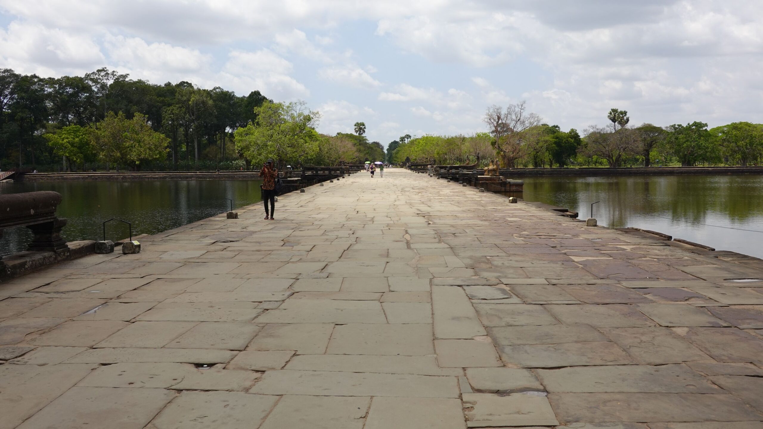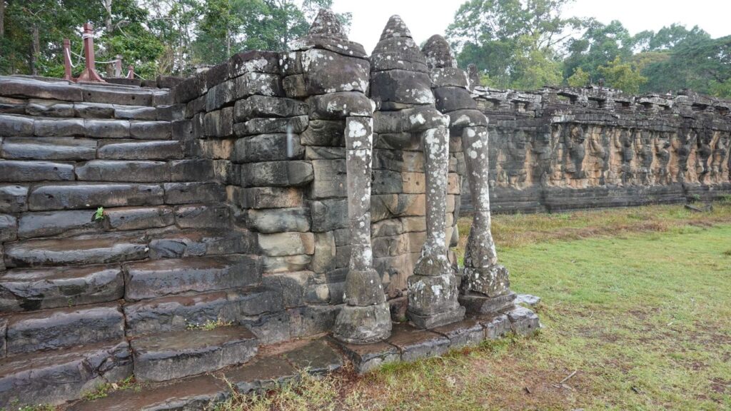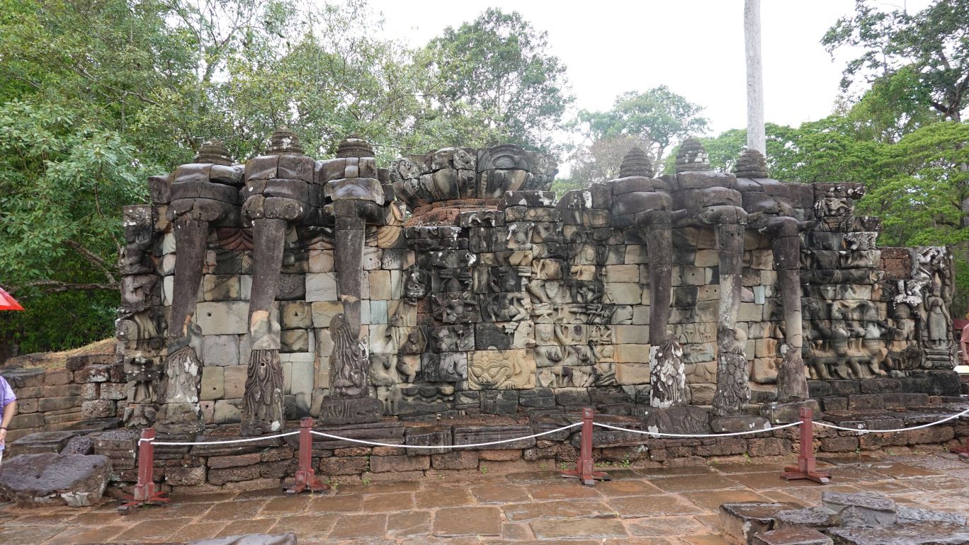 Nachdem wir 3 Stunden hier verbracht haben, ist nun eine Erholungspause angesagt. Dann machen wir uns auf nach Angkor Thom. Das war die Hauptstadt des Angkor-Reichs. Die anlage ist von einer 12km langen Mauer umgeben. Innen ist der Bayon (der Tempel) und der Königspalast, sowie die Elefantenterrasse.