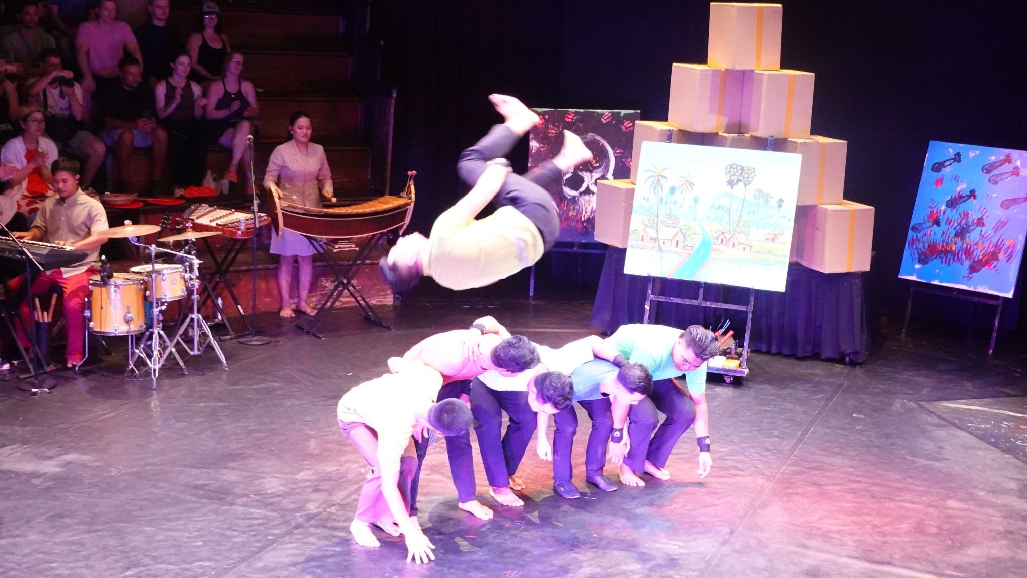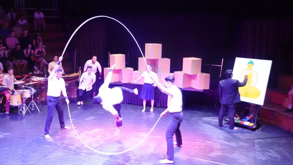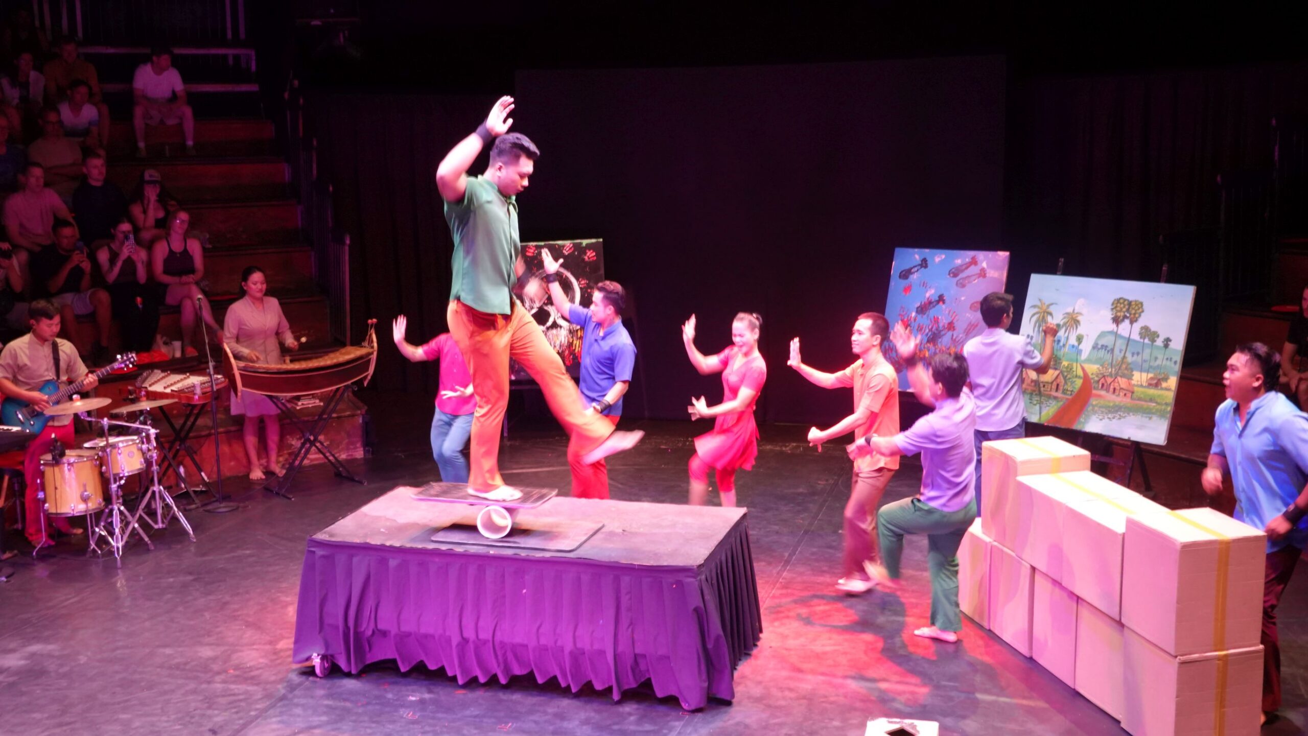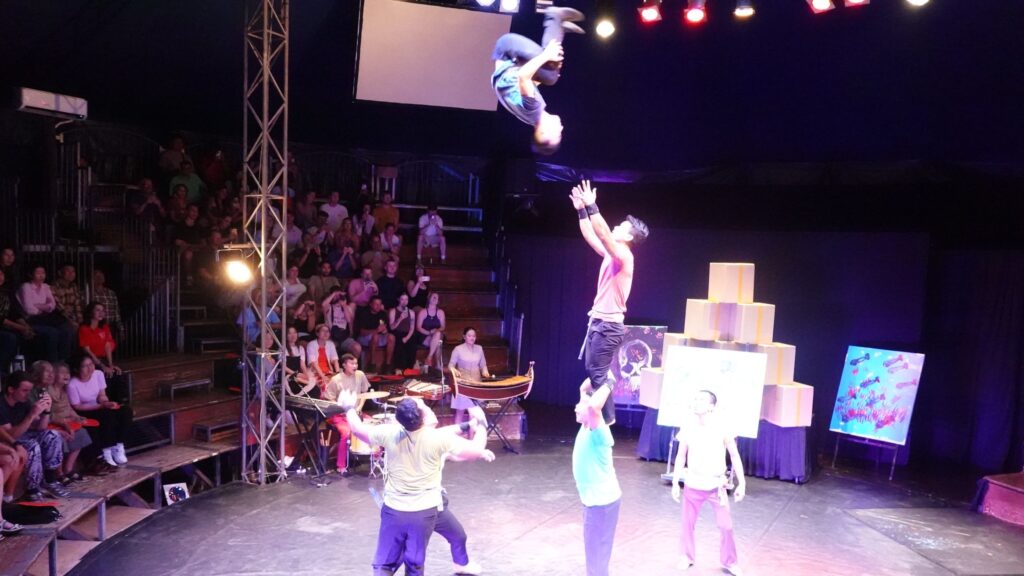 Am Abend besuchen wir eine Vorstellung des Phare-Ponleu-Seplak-Zirkus. Das ist eine Kunstschule, die auch im Zirkushandwerk ausbildet. Die Vorstellung erzählt die Geschichte Kambodschas. Teils dramatisch (über den Vietnamkrieg und die Schreckensherrschaft der Roten Khmer), teil sehr fröhlich und zuversichtlich. Absolut sehenswert und tolle Artisten.