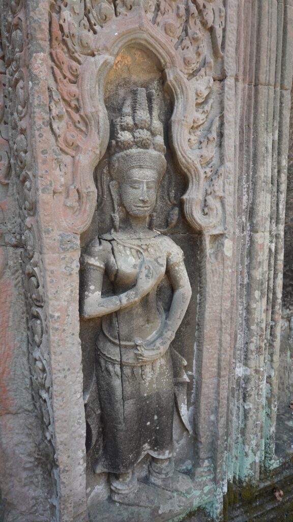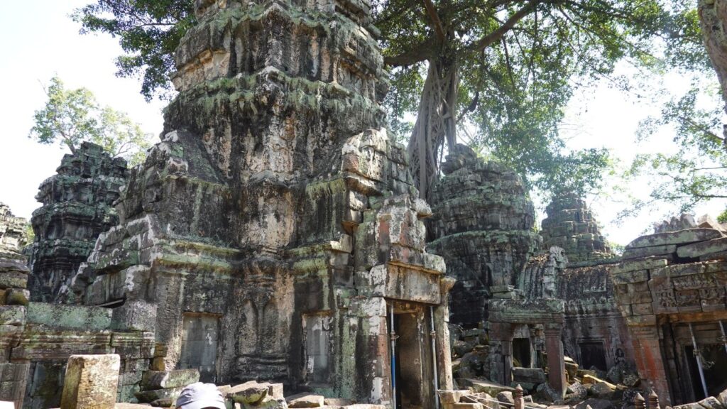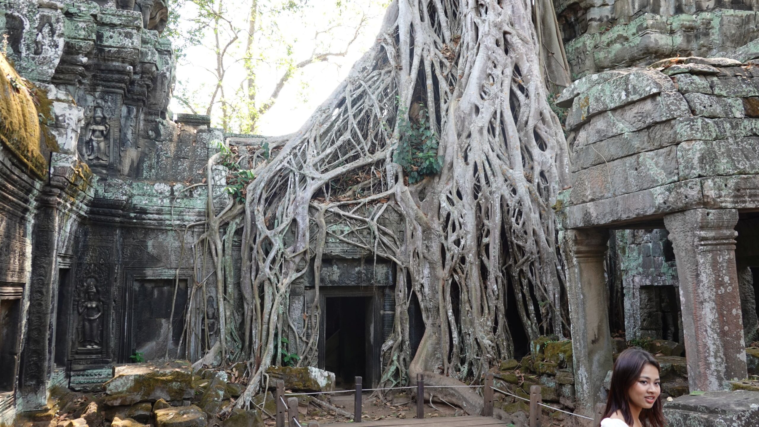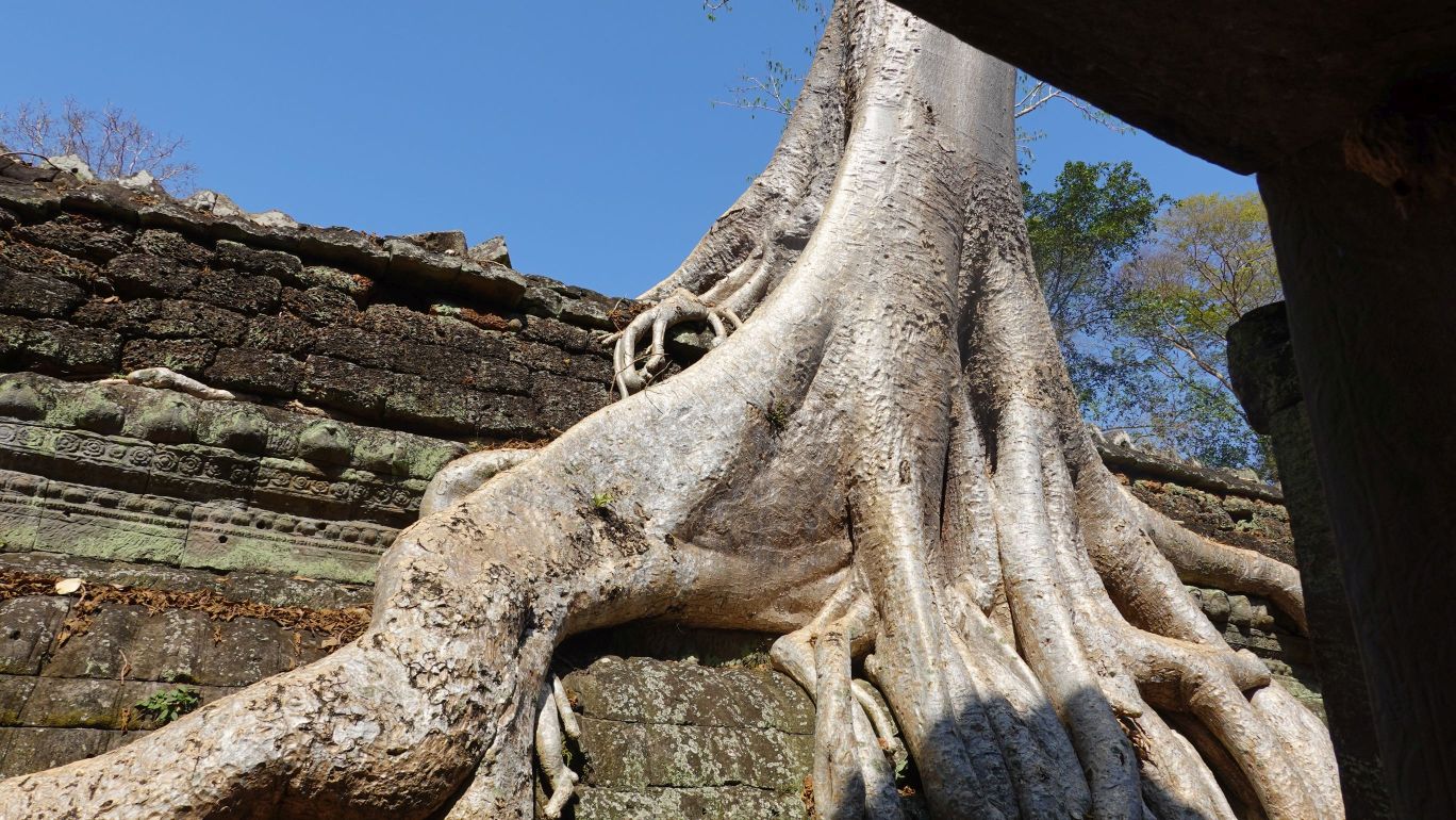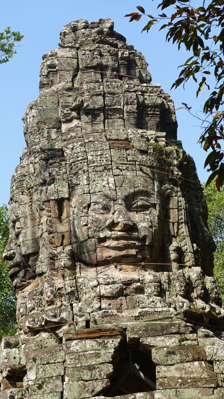 07.03: Wir wandeln auf den Spuren von „Lara Croft: Tomb Raider“. Teile des Films wurden in den Tempelruinen vom „Ta Prohm“ gedreht. Die Anlage besuchen wir heute. Die Tempelruinen stehen mitten im Dschungel und teilweise sind die Gebäude mit Lianen überwachsen und die Bäume klammern sich an den Steinen fest. Das schaut richtig mystisch aus.