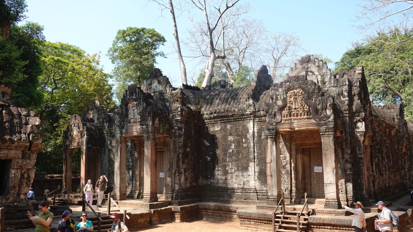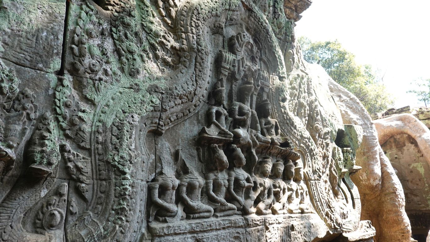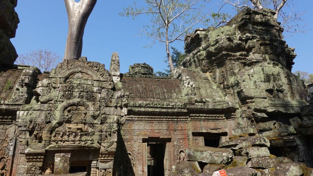 Heute besuchen Sie den bekannten Ta Prohm Tempel. Im Jahre 1186 fertiggestellt, wurde dieser Tempel zu Ehren der Mutter von König Jayavarman VII erbaut. Ta Prohm wurde Ende des 19.Jahrhunderts von den Franzosen entdeckt und blieb bewusst so erhalten wie die Restauratoren ihn vorfanden. Der halb zerfallene Zustand und die den Tempel durchschlingenden Wurzeln der Baumriesen verleihen dem Tempel eine mystische Atmophäre.