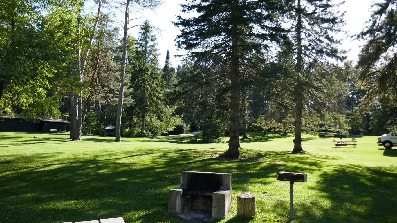 Das ist ein staatlicher Campground, der nur minimale Versorgungseinrichtung hat – aber wir haben mit dem RV eh alles dabei. Wir finden einen wunderschönen Platz mitten auf einer riesigen Wiese mit Wald rundherum. Da ist das Campen wirklich toll! Und Poldi ist in seinem Element – Feuer und Grillen 🙂 🙂