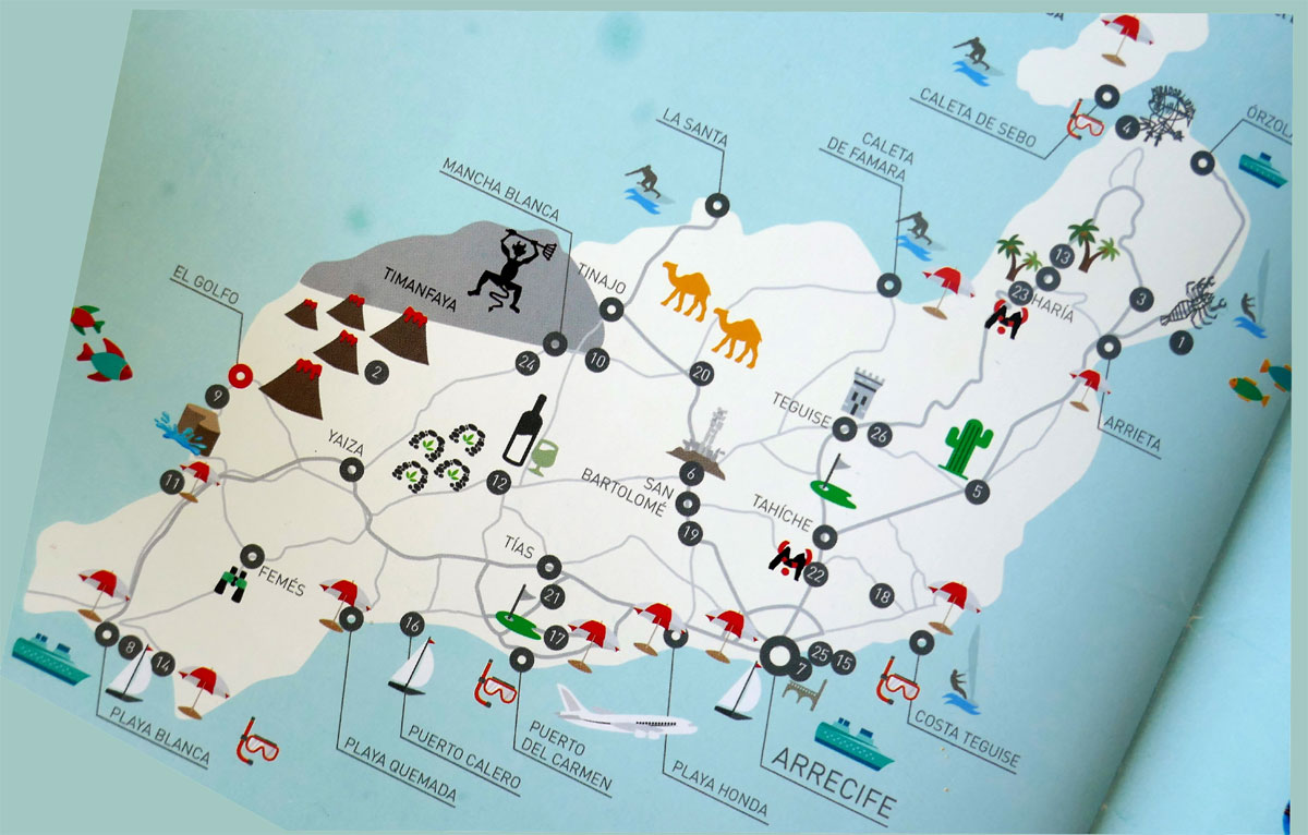 Die Insel ist vulkanischen Ursprungs, im Westen ist der Nationalpark Timanfaya, umgeben vom Vulkanpark (Parque Natural de los Volcanos) und La Geria, ein Weinanbau- und Landschaftsschutzgebiet. Im Norden die Bergketten von Famara mit bis zu 671 m Höhe. Die Hauptstadt Arrecife liegt an der Ostküste.